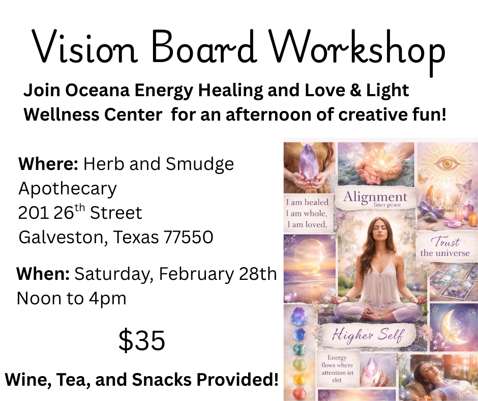 Step into an afternoon of creativity, clarity, and soulful intention-setting at our Vision Board Workshop, hosted by Oceana Energy Healing and Love & Light Wellness Center. This immersive experience is designed to help you align with your highest self, tap into your inner wisdom, and create a visual roadmap for the life you’re calling in.